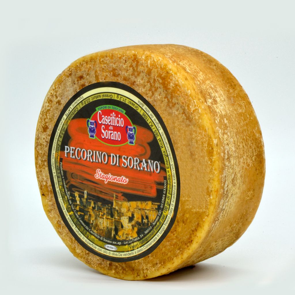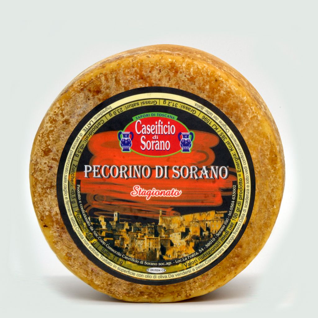 Formaggio pecorino stagionato ottenuto secondo una particolare procedura di produzione, rappresenta uno dei simboli del Caseificio di Sorano. Di forma cilindrica e colore paglierino, si caratterizza per la struttura tenace al taglio, per la pasta semidura con minuta occhiatura e per il sapore fragrante accentuato che lo contraddistinguono nell’intera gamma dei prodotti stagionati.